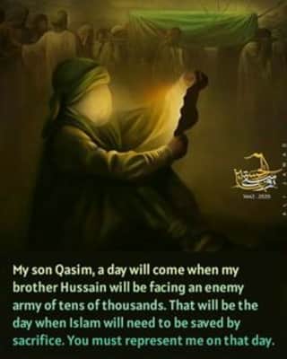 Al-Qāsim ibn al-Ḥasan was the son of Hasan ibn Ali. He supported his uncle Husayn ibn Ali in fighting off the Umayyad forces during the Battle of Karbala where he was killed at the age of 13.