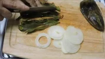 Rajas con crema is the name given to a Mexican dish consisting of sliced poblano pepper with cream. It is very popular in Mexico, particularly in the central and southern parts of the country. It is one of the dishes most commonly served during taquizas, together with tinga, mole, chicharrón, and papas con chorizo.