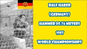 Ralf Haber is a retired East German hammer thrower. His personal best throw was 83.40 metres, achieved in May 1988 in Athens. This is the current German record.