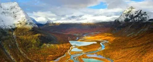 The Rapa Valley is a 35 kilometres long valley in Sweden and the largest in the Sarek National Park, part of the Laponian area. The Rapa River runs through the valley, which is surrounded by steep mountains.