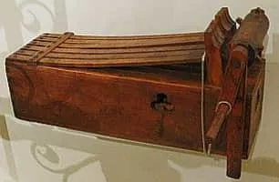 A ratchet, also called a noisemaker or Knarre, is an orchestral musical instrument played by percussionists. Operating on the principle of the ratchet device, a gearwheel and a stiff board are mounted on a handle, which rotates freely. The player holds the handle and swings the whole mechanism around.