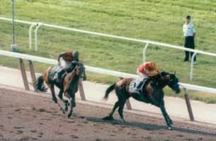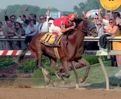 Real Quiet was an American Champion Thoroughbred racehorse. He was nicknamed "The Fish" by his trainer due to his narrow frame. He is best remembered for winning the first two legs of American Triple Crown: the Kentucky Derby and the Preakness Stakes.