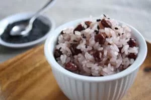 Red bean rice, called patbap in Korean and sekihan in Japanese, is rice cooked with red beans.
