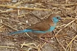 The red-cheeked cordon-bleu or red-cheeked cordonbleu is a small passerine bird in the family Estrildidae. This estrildid finch is a resident breeding bird in drier regions of tropical Sub-Saharan Africa. Red-cheeked cordon-bleu has an estimated global extent of occurrence of 7,700,000 km².