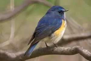 The red-flanked bluetail, also known as the orange-flanked bush-robin, is a small passerine bird that was formerly classed as a member of the thrush family Turdidae, but is now more generally considered to be an Old World flycatcher, Muscicapidae. It, and related species, are often called chats.