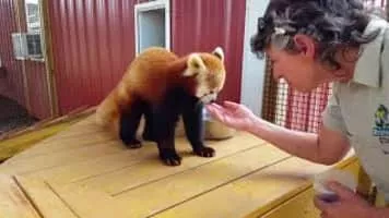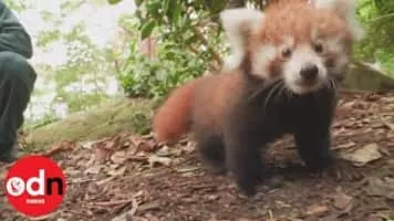 Red pandas followed by satellite in the conservation of 'milestone'