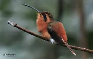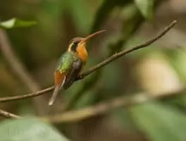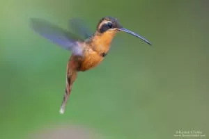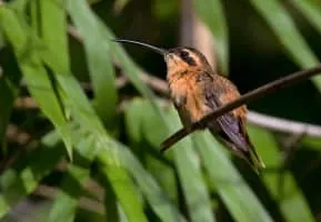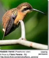 The reddish hermit is a species of bird in the family Trochilidae, the hummingbirds. It is found in Bolivia, Brazil, Colombia, Ecuador, Peru, Venezuela, and in the Guianas. At 7. 5 cm and a weight under 3 grams, it is among the smallest of the hermits and smallest birds overall.