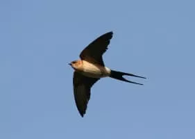 The red-rumped swallow is a small passerine bird in the swallow family. It breeds in open hilly country of temperate southern Europe and Asia from Portugal and Spain to Japan, India, Sri Lanka and tropical Africa. The Indian and African birds are resident, but European and other Asian birds are migratory.