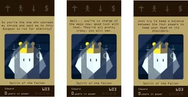 Reigns is a strategy video game developed by Nerial and published by Devolver Digital. Set in a fictional medieval world, it places the player in the role of a monarch who rules the kingdom by accepting or rejecting suggestions from advisors.