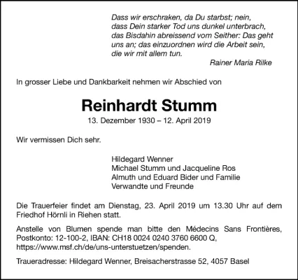 Reinhardt Stumm Life story