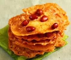Rempeyek or peyek is a deep-fried savoury Javanese cracker made from flour with other ingredients, bound or coated by crispy flour batter. The most common type of rempeyek is peyek kacang; however, other ingredients can be used instead, such as teri, rebon, or ebi.