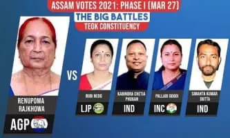 Renupoma Rajkhowa is an Asom Gana Parishad politician from Assam, India. She was elected into the Assam Legislative Assembly election in 1991, 1996 2016 from Teok constituency.