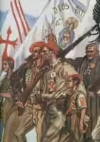The Requetés were the Carlist militia of the Traditionalist Communion during the Spanish Civil War. Wearing red berets, they mostly came from Navarre and were highly religious with many regarding the war as a Crusade.