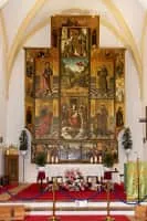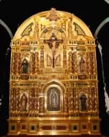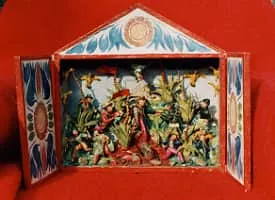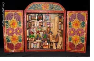 A retablo is a devotional painting, especially a small popular or folk art one using iconography derived from traditional Catholic church art. More generally retablo is also the Spanish term for a retable or reredos above an altar, whether a large altarpiece painting or an elaborate wooden structure with sculptures.