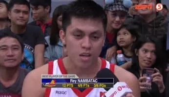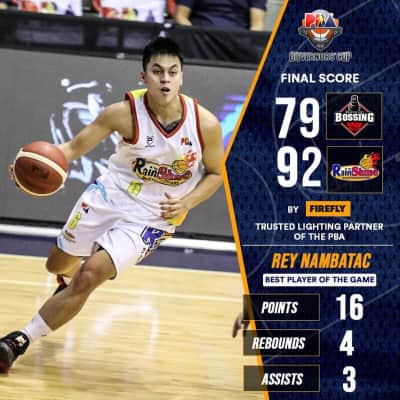Rey Benedict Chan Nambatac is a Filipino professional basketball player for the Rain or Shine Elasto Painters of the Philippine Basketball Association. He played for the Letran Knights in the NCAA during his college days. He was selected seventh overall pick in the 2017 PBA draft by Rain or Shine Elasto Painters.