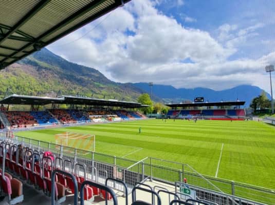 Rheinpark Stadion in Vaduz is the national stadium of Liechtenstein. It plays host to home matches of the Liechtenstein national football team, and is also the home of football club FC Vaduz. It lies on the banks of the river Rhine, just metres from the border with Switzerland.