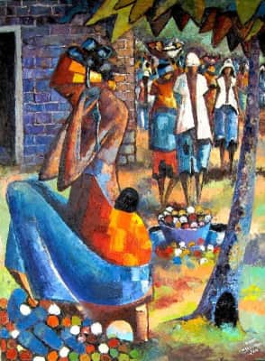 Rhode Bath-Schéba Makoumbou is an artist from the Republic of the Congo. Working in oil painting and sculpture, she has exhibited around the world. She works from Brussels and Brazzaville.