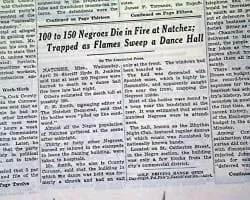 The Rhythm Club fire was a fire in a dance hall in Natchez, Mississippi, on the night of April 23, 1940, which killed 209 people and severely injured many others. Hundreds of people were trapped inside the building. At the time, it was the second deadliest building fire in the history of the nation.
