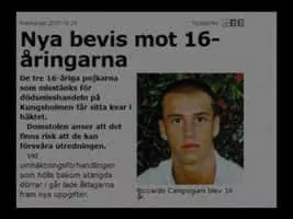Riccardo Campogiani was a Swedish teenager of Italian descent, who was beaten to death at a party in central Stockholm, Sweden.