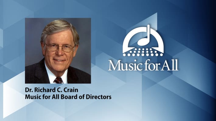 Richard C. Crain has just completed a tenure as President of the Board of Directors of The Midwest Clinic. He previously served 21 years as Director of Music for the Spring Independent School District near Houston, TX. He also previously served as Head Band Director at Westfield HS, Spring HS, and Belton HS.