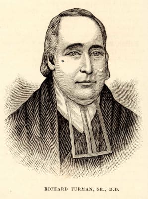 Richard Furman was a Baptist leader from Charleston, South Carolina, United States. He was elected in 1814 as the first president of the Triennial Convention, the first nationwide Baptist association. Later he was the first president of the South Carolina State Baptist Convention.