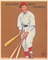 Richard Benjamin Ferrell was an American professional baseball player, coach, scout, and executive. He played for 18 seasons in Major League Baseball as a catcher for the St. Louis Browns, Boston Red Sox, and Washington Senators, from 1929 through 1947.