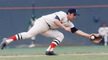 Americo Peter "Rico" Petrocelli is an American former baseball shortstop and third baseman who played his entire Major League Baseball career with the Boston Red Sox. Listed at 6 feet 0 inches and 185 pounds, he both threw and batted right-handed.