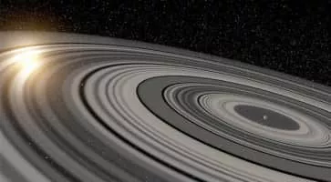 A ring system is a disc or ring orbiting an astronomical object that is composed of solid material such as dust and moonlets, and is a common component of satellite systems around giant planets. A ring system around a planet is also known as a planetary ring system.