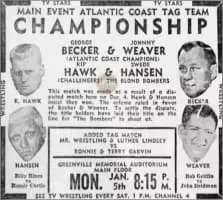 Harvey Maurice Evers was an American professional wrestler best known by his ring name, Rip Hawk. He began his wrestling career in the Mid-Western United States before joining Jim Crockett Promotions in the early 1960s.