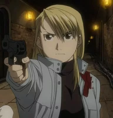 Lieutenant Riza Hawkeye is an officer in the Amestrian State Military as well as the personal adjutant and bodyguard of Colonel Roy Mustang.