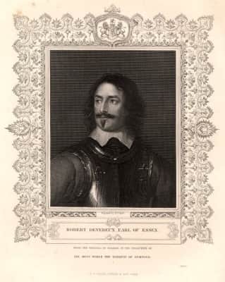 Robert Devereux, 3rd Earl of Essex, KB, PC was an English Parliamentarian and soldier during the first half of the 17th century. With the start of the Civil War in 1642, he became the first Captain-General and Chief Commander of the Parliamentarian army, also known as the Roundheads.