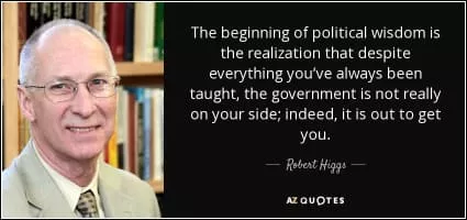 Robert Higgs is an American economic historian and economist combining material from Public Choice, the New institutional economics, and the Austrian school of economics; and describes himself as a "libertarian anarchist" in political and legal theory and public policy.