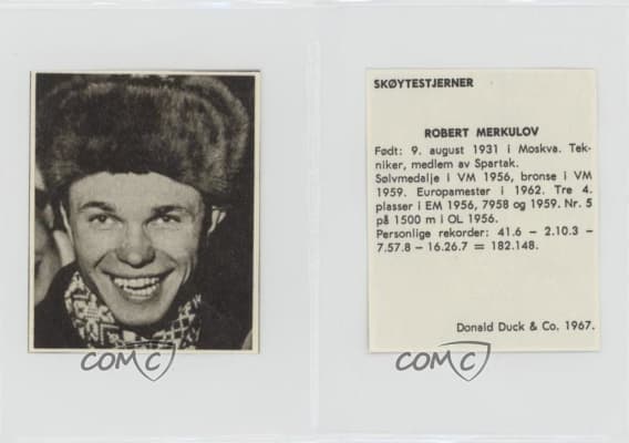 Robert Viktorovich Merkulov was a Russian speed skater who competed for the Soviet Union in the 1956 Winter Olympics. He was born in Moscow. In 1956 he finished fifth in the 1500 metres event. Merkulov died on 6 November 2022, at the age of 91.