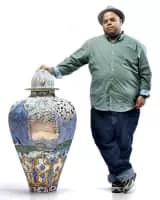 Roberto Lugo is an American potter, social activist, spoken word poet, and educator. Lugo's work draws together hip-hop, history and politics into formal ceramics and 2D works. Born in Kensington, Philadelphia to Puerto Rican parents, Lugo began his career as a graffiti artist before discovering ceramics.