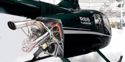 The Robinson R66 is a helicopter designed and built by Robinson Helicopter Company. It has five seats, a separate cargo compartment and is powered by a Rolls-Royce RR300 turboshaft engine. The R66 is slightly faster and smoother than the Robinson R44 from which it is derived.