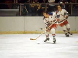 Rodrigue Gabriel Gilbert was a Canadian professional ice hockey forward who played his entire career for the New York Rangers of the National Hockey League. Known as "Mr. Ranger", he played right wing on the GAG line with Vic Hadfield and Jean Ratelle but never with a Stanley Cup championship team.