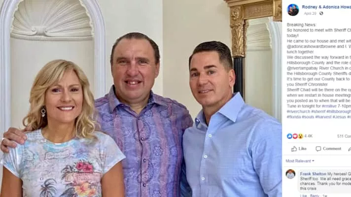 Rodney Morgan Howard-Browne is a South African-born American evangelist and conspiracy theorist. He has resided in Tampa, Florida since the mid-1990s and is pastor of The River Church in Tampa Bay.