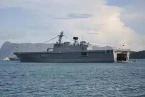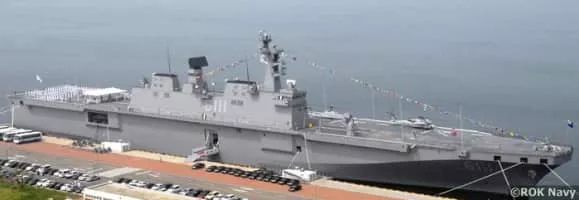 ROKS Dokdo is the lead ship of the Dokdo-class amphibious assault ships of the Republic of Korea Navy, launched on 12 July 2005 at the shipyard of Hanjin Heavy Industries & Constructions Co. in Busan. Presently Dokdo is the flagship and the largest vessel in the South Korean navy.