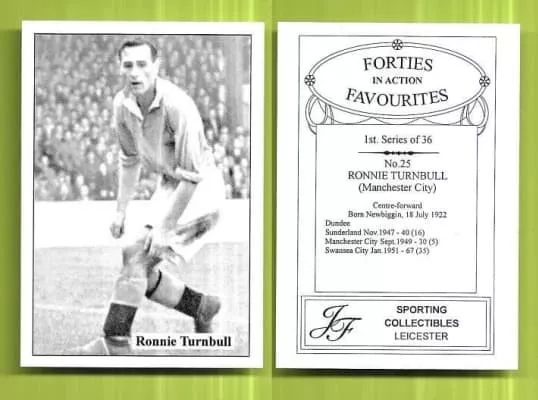 Ronnie Turnbull was an English footballer who played as a centre forward. He played junior football in Scotland during the Second World War with Jeanfield Swifts before joining Dundee in 1944. He was transferred to Sunderland for a fee of £10,000 in November 1947, scoring four goals on his debut for the club.
