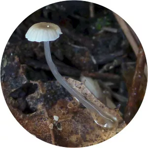 Roridomyces roridus, commonly known as the dripping bonnet or the slippery mycena, is a species of agaric fungus in the family Mycenaceae. It is whitish or dirty yellow in color, with a broad convex cap 5–15 mm in diameter. The stipe is covered with a thick, slippery slime layer.