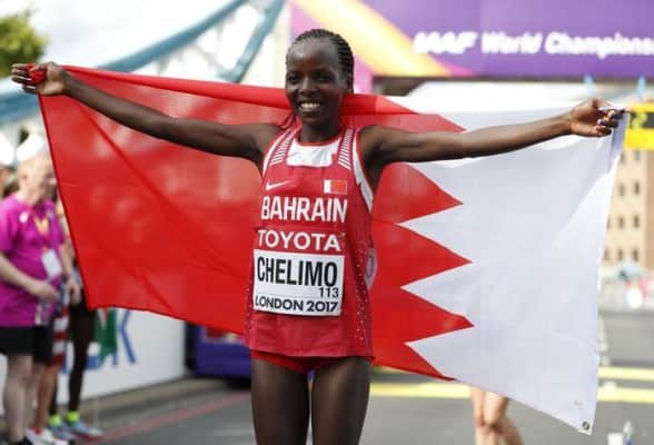Rose Chelimo is a Kenyan-born Bahraini long-distance runner who competes in road running events up to the marathon distance. She is the 2017 IAAF world champion. She represented Bahrain at the 2016 Summer Olympics, placing eighth in the women's marathon.