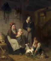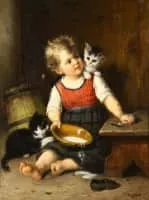 Rudolf Epp (1834-1910, German) was a realist painter of the Munich School who primarily painted women and children with cats in domestic scenes. Epp started drawing at a young age, and he studied art at the Grand Ducal Baden Art School in Karlsruhe. Later he also attended the Dusseldorf Art Academy.