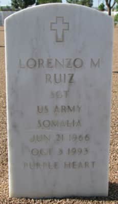 Edit. Sgt. Lorenzo M. Ruiz (June 21, 1966 - October 3, 1993) was a U.S. Army Ranger who served in Somalia.