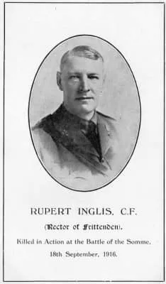 Rupert Edward Inglis was an England international rugby player who later became a Church of England rector. During the First World War, Inglis was a chaplain to the British Army and was killed during the Battle of the Somme.