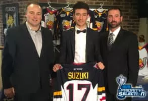 Ryan Suzuki is a Canadian professional ice hockey centre currently playing for the Carolina Hurricanes of the National Hockey League. He was drafted 28th overall by the Hurricanes in the first round of the 2019 NHL Entry Draft. He is the younger brother of Montreal Canadiens centre and team captain Nick Suzuki.