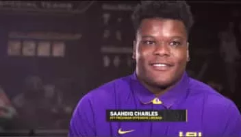 Saahdiq Charles is an American football guard for the Washington Commanders of the National Football League. He played college football at LSU and was drafted by Washington in the fourth round of the 2020 NFL Draft. Charles was a member of the LSU team that won the 2020 College Football Playoff National Championship.