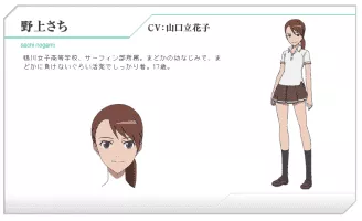 Sachi Nogami (野上 さち, Nogami Sachi) is the childhood friend of Madoka Kyouno and Michi Kondou. She is a member of the surf club and is the daughter of the man who groped Array in the viral YouTube video.