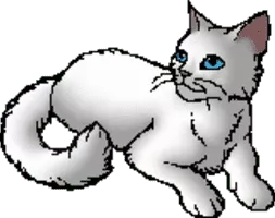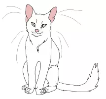 Sagewhisker is a snowy-white she-cat with long whiskers, blue eyes, and a graying muzzle.