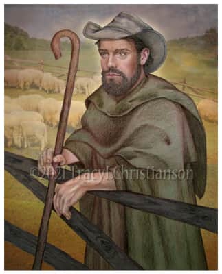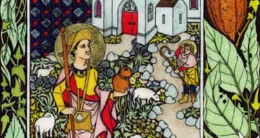 | Attributes | Benedictine with sheep, shepherd |