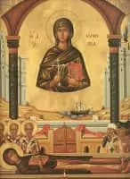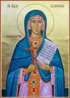Saint Euphemia, "well-spoken [of]", known as the All-praised in the Orthodox Church, is a Christian saint, who was martyred for her faith in 303 AD. According to Christian tradition, this occurred at Chalcedon. According to tradition, Euphemia was arrested for refusing to offer sacrifices to Ares.